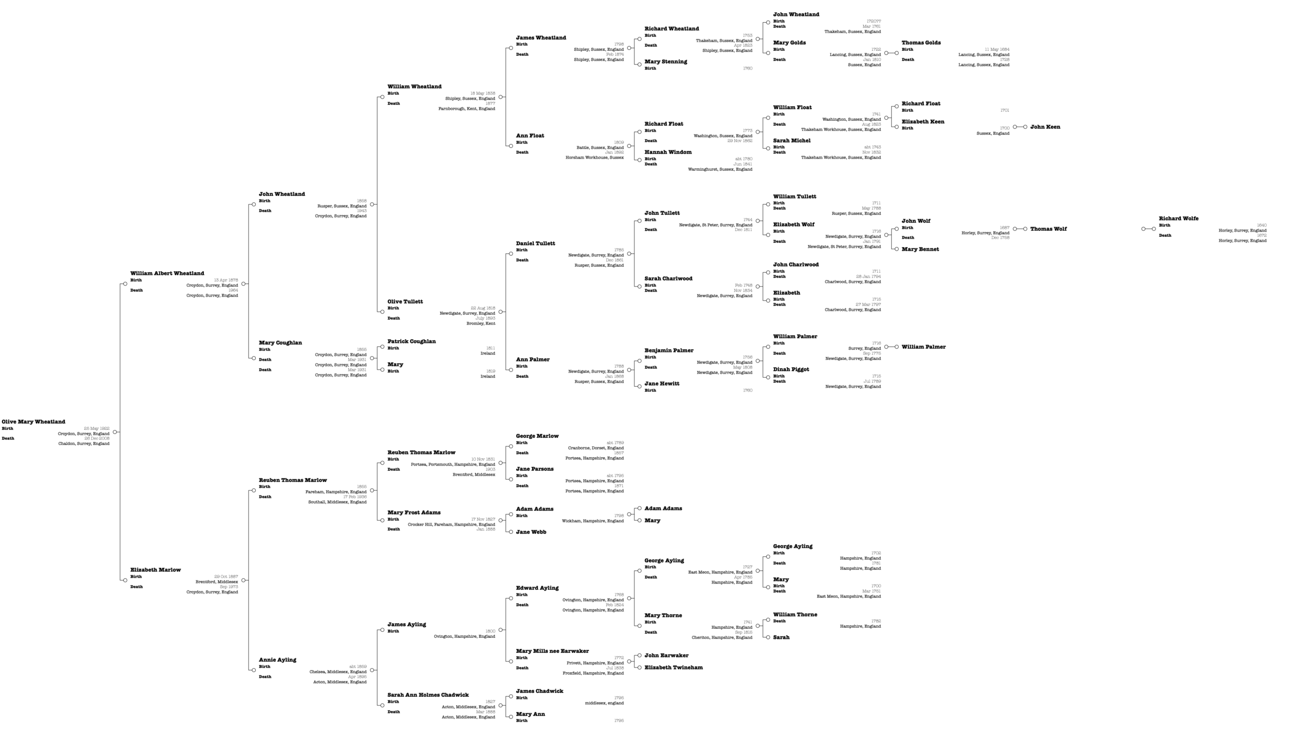 See where the Aylings fit in the family tree, from my grandmother Olive Wheatland.